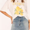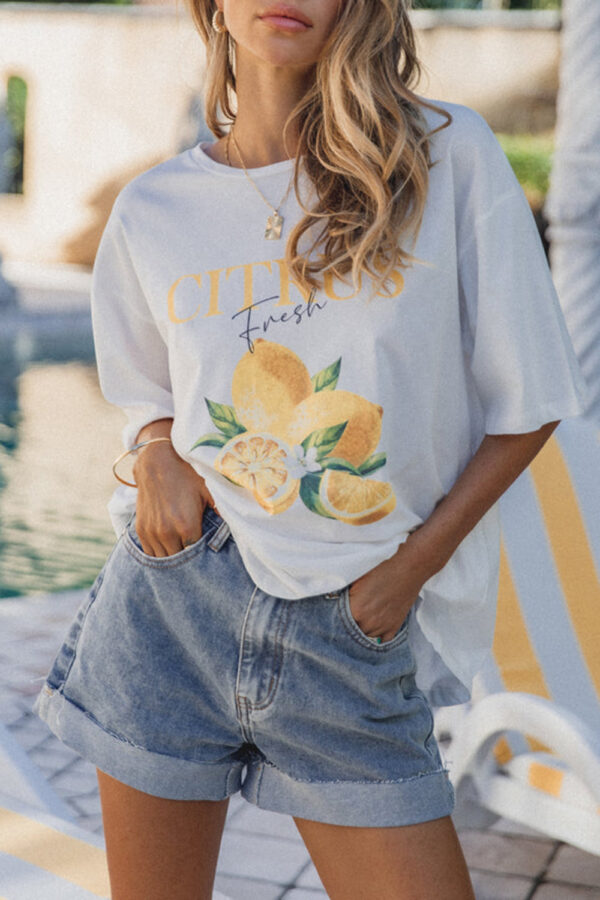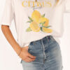 The perfect addition to your summer wardrobe, this breezy white tee features a round neckline and short sleeves for all-day comfort. To top it off, a creative Citrus graphic feature gives you an edgy but feminine look.